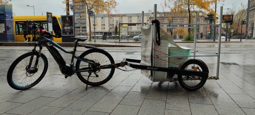 Depuis la mi-octobre, Médiacycles travaille avec l’entreprise Recycle sur une activité de collecte de biodéchets à vélo. Le principe est simple : un collecteur, salarié en insertion à Médiacycles, fait la tournée des entreprises à l’aide de son vélo et de sa remorque. Il est munit de bio-sauts vides, qu’ils échangent contre les bio-sauts pleins.