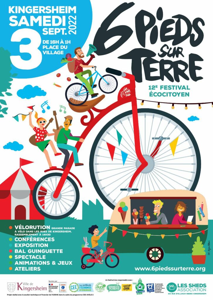 Médiacycles sera présente pour la 12ème édition du festival « 6 pieds sur Terre » organisé par la ville de Kingersheim et les Sheds le samedi 3 septembre 2022 aux côtés d’autres associations locales.